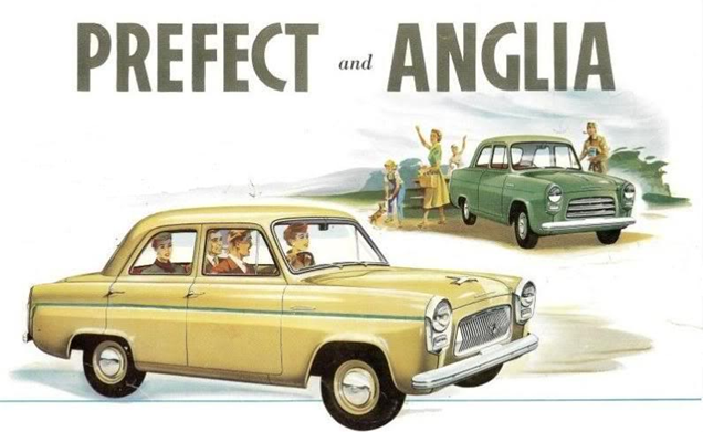 In 1953, Ford UK launched the new Ford Anglia 100E, Ford Prefect 100E and the Ford Popular 100E. An easy way to tell the difference between the Anglia 100E, Ford Popular 100E and the Prefect 100E is that the Anglia and the Popular were two door cars where as the Prefect was a four door. The Radiator on the Prefect was also different with vertical bars. Ford also produced an estate version of the 100E range known as the the Escort and Squire.